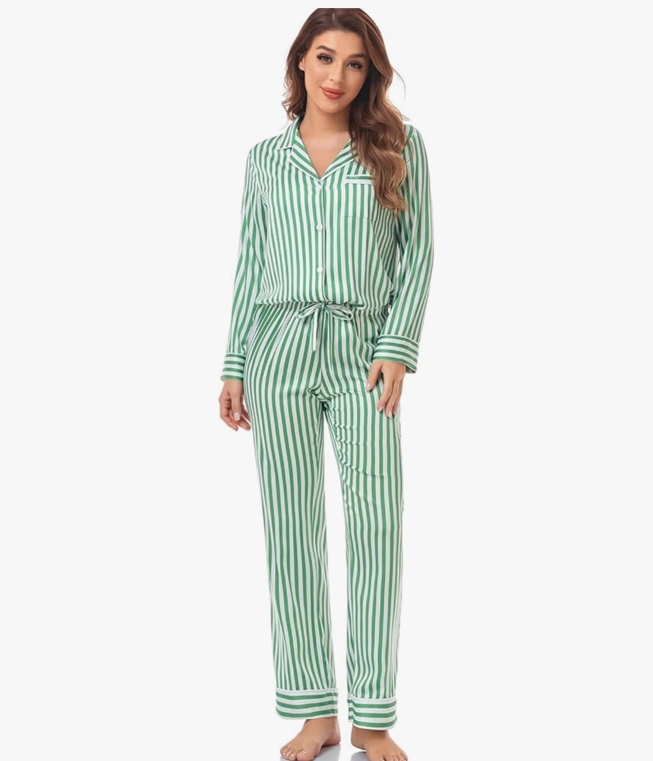 The perfect cozy pajamas that are a fabulous gift for yourself or the loved ones in your life! Featured in a fun stripe pattern in both red and green to rock in the holiday season!