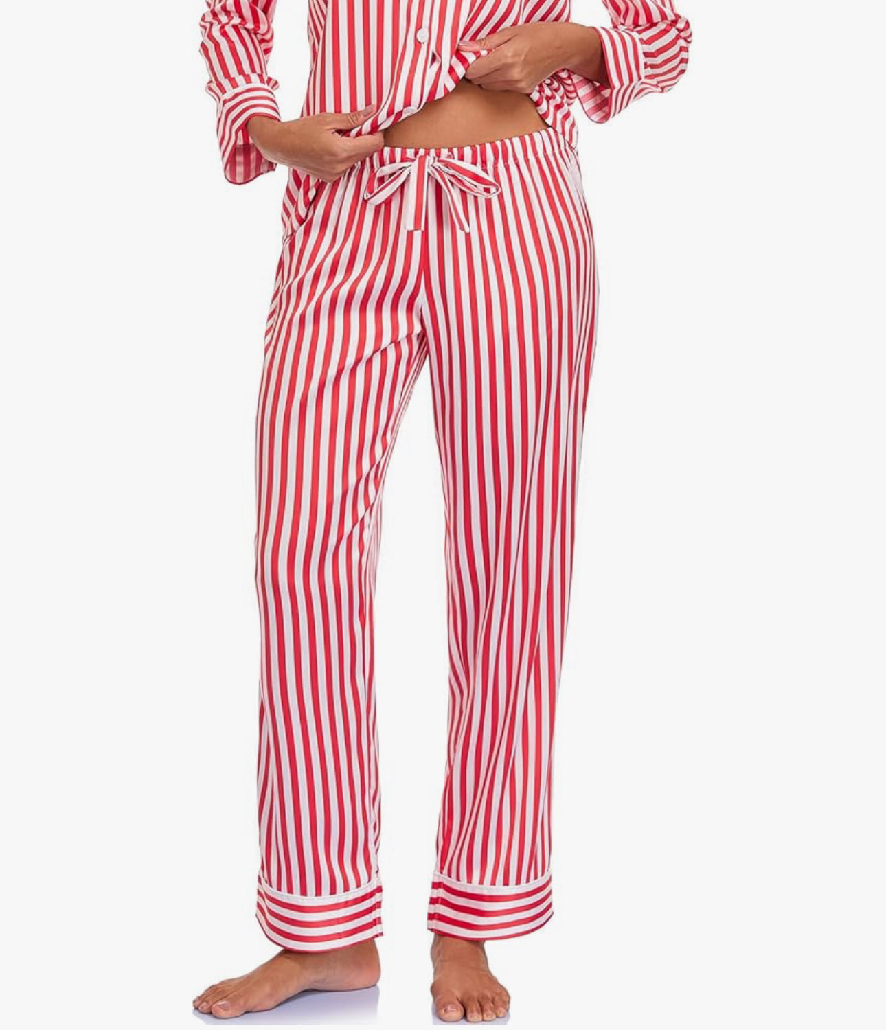 The perfect cozy pajamas that are a fabulous gift for yourself or the loved ones in your life! Featured in a fun stripe pattern in both red and green to rock in the holiday season!