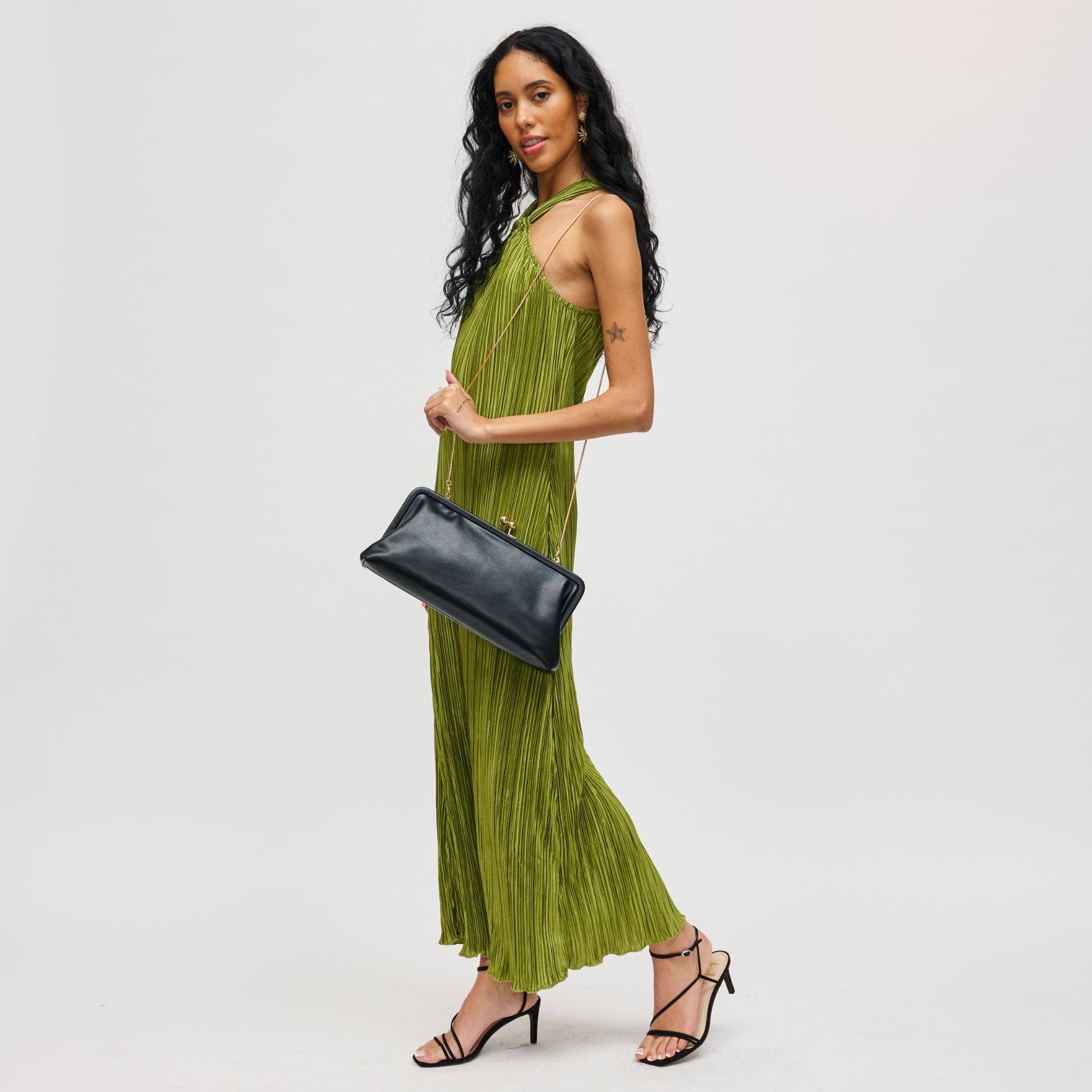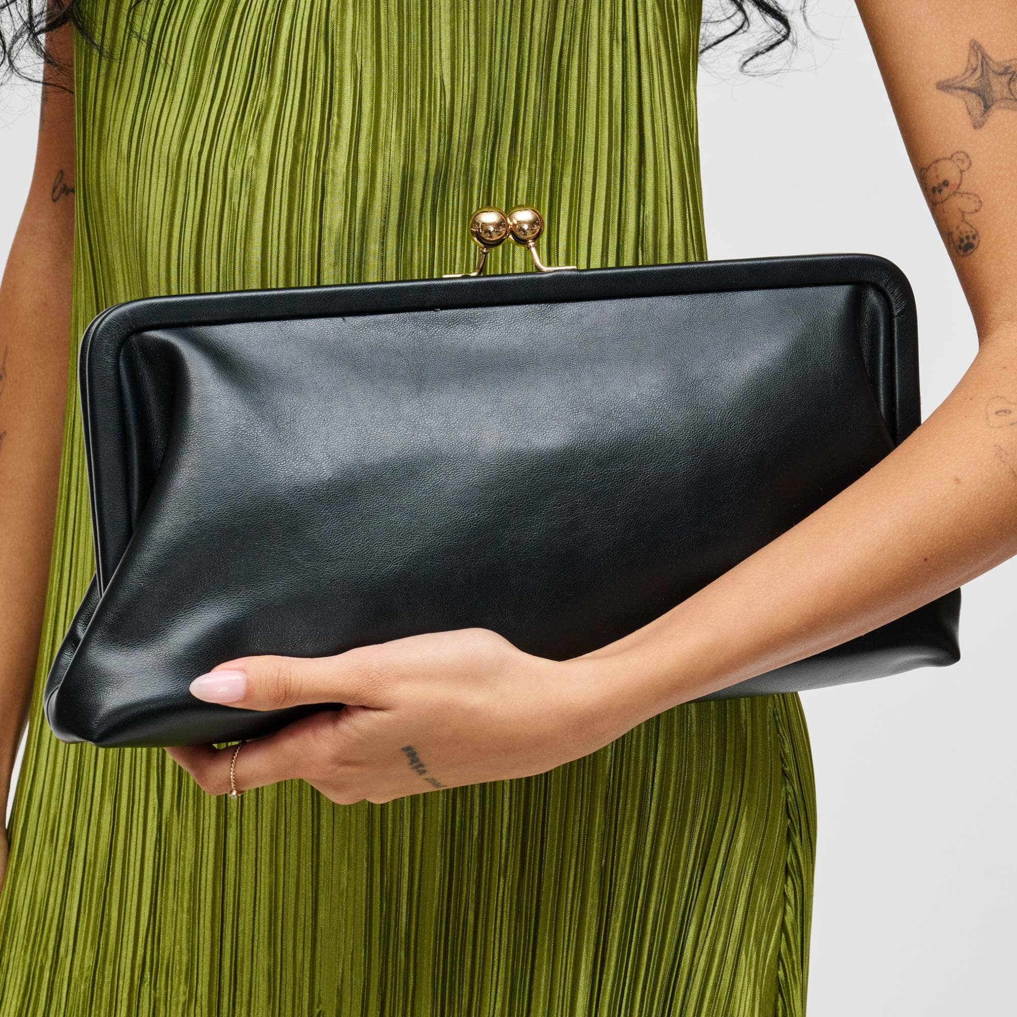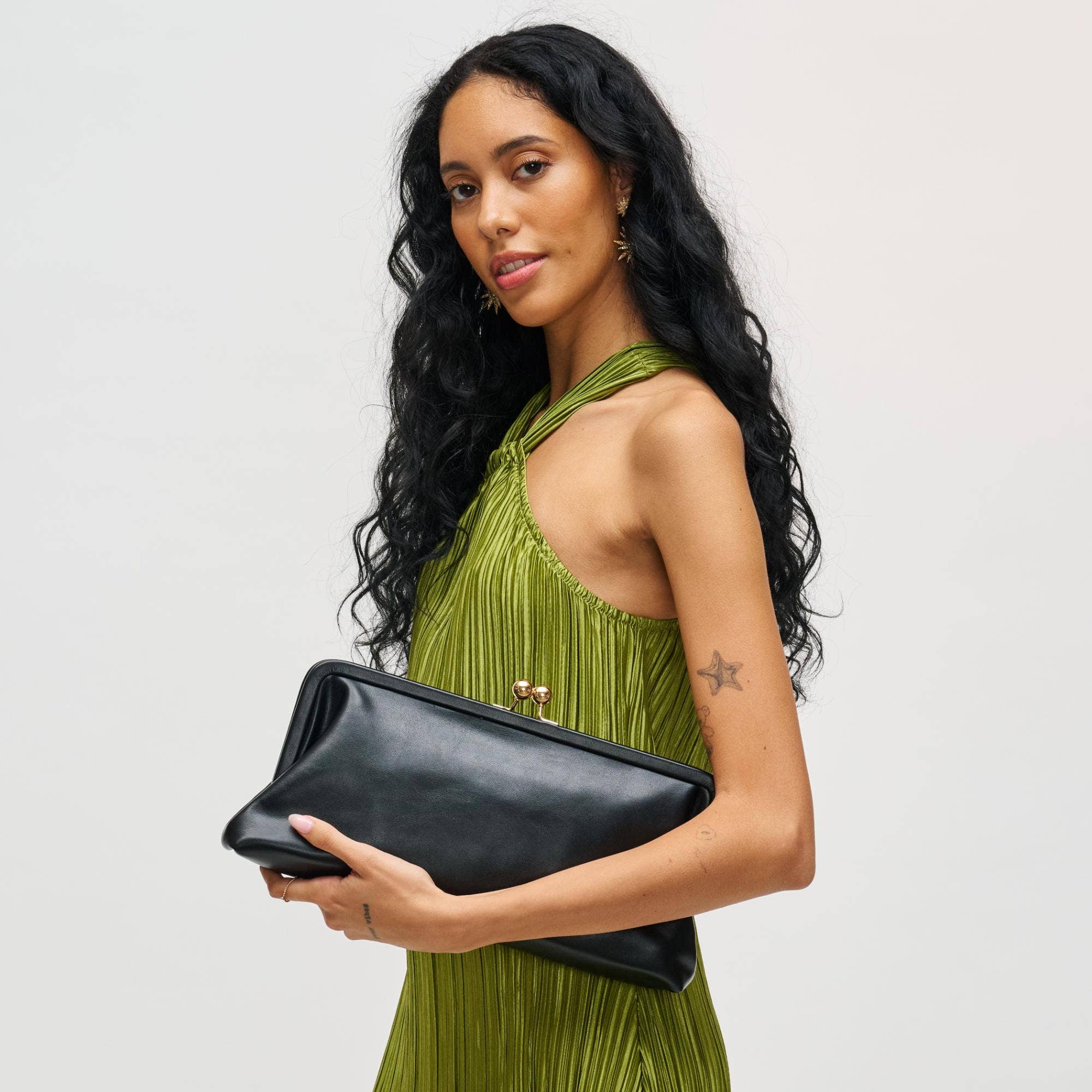 Make a statement with the sleek Kristin Clutch—a timeless accessory designed for the modern woman. This stylish clutch features a spacious interior, perfectly accommodating your essentials for day or night. With its elegant closure and chic silhouette, it effortlessly transitions from casual outings to formal events. Crafted from high-quality vegan materials, this bag embodies ethical fashion without compromising on style. Whether paired with a Little Black Dress or your favorite denim, the Kristin Clutch is a versatile companion that reflects your values. Elevate your wardrobe; embrace fashion that feels as good as it looks. *Item Type: Clutch *Material: Vegan Leather *Closure: Kiss Lock *Exterior Details: Detachable Chain Strap, Gold Hardware *Interior Details: Fabric Lined, 1 Slip Pocket