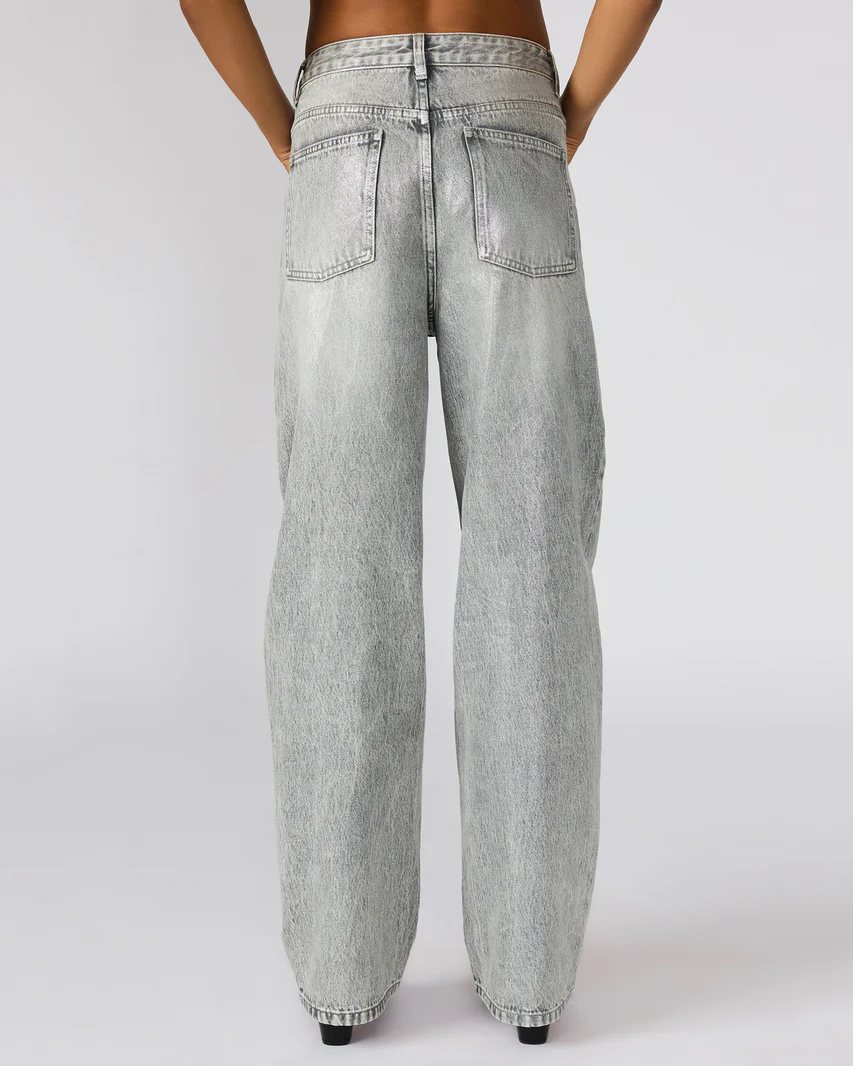 Elevate your wardrobe with the Zo jean featuring a sleek shimmery material, straight-leg cut, and a distinctive metallic finish that adds a modern edge to any outfit. Designed with functional pockets, these jeans blend style with practicality, offering both a polished look and everyday convenience. Ideal for those seeking a refined yet contemporary denim option.