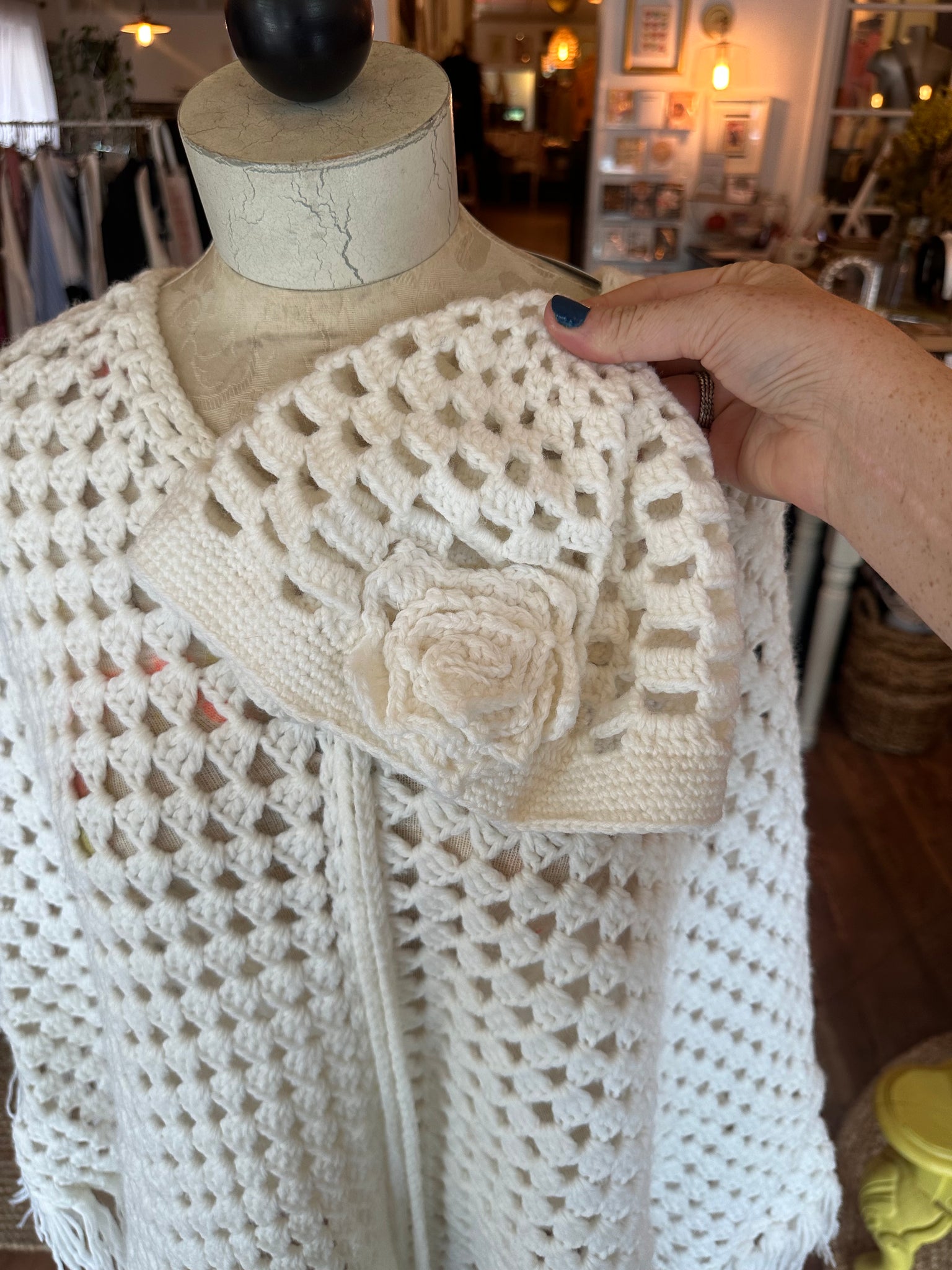 Vintage Knit White Poncho & Hat Set